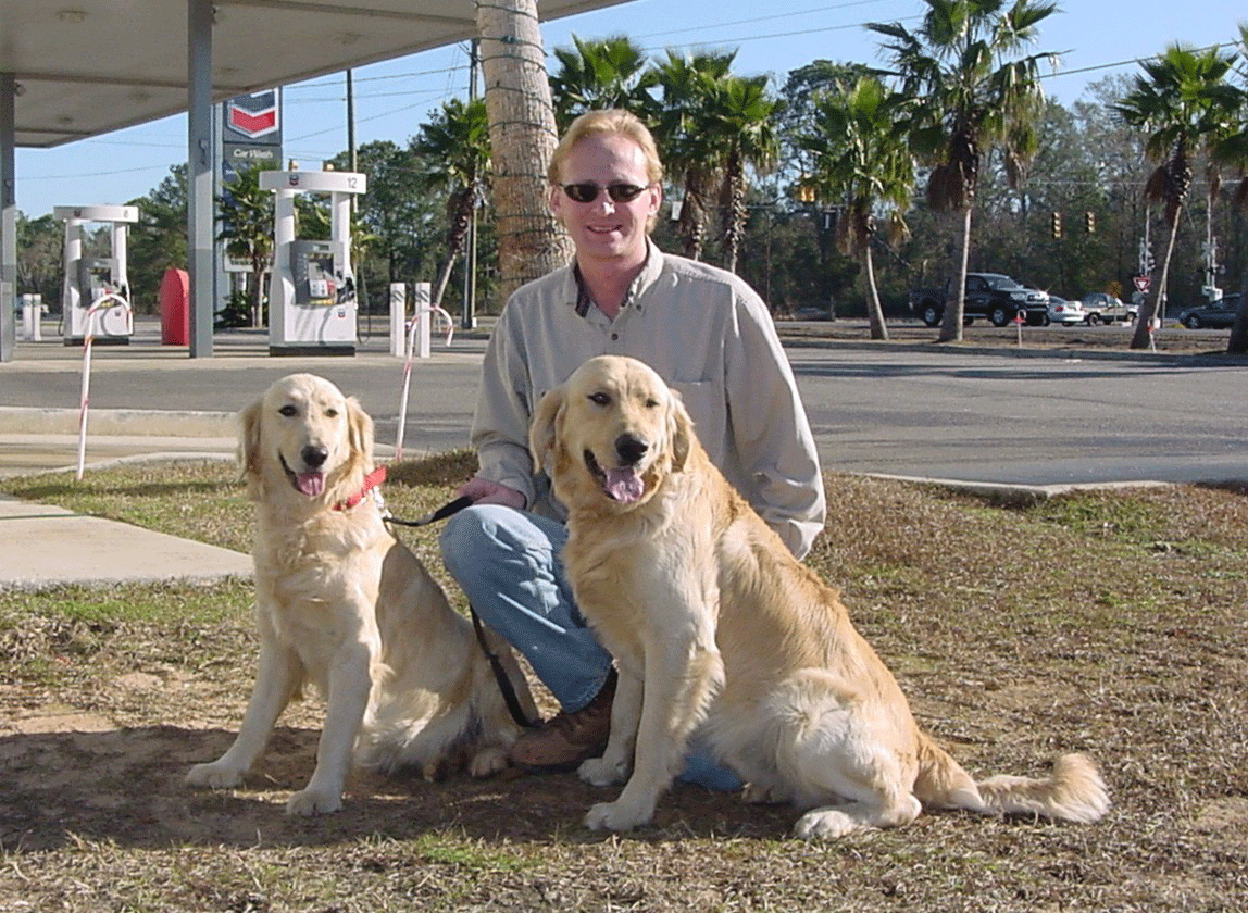Allday Golden Retrievers began over 25 years ago after the loss of our family dog Dutchess, who was a Cocker Spaniel. I read about Golden Retrievers being great family and neighbor friendly dogs. Being a little wild in spirit, I had originally wanted an Alaskan Malamute with maybe a touch of wolf. However, having my first child on the way, it didn't take much research to find out this was not the best dog for a beginning family. Shortly I ran across an article about Golden Retrievers that more fit my family's situation. It was one of those moments where a decision would change your life. Mickey was the name of my first Golden Retriever and I dind't even have his hips certified for dysplasia until he was eight years old. They came back "Excellent." At eight, he could still jump into my Chevy Silveraldo (with tailgate up). He lived to ten years of age (the average age for a Golden) and he changed our lives and perceptions of dogs forever.